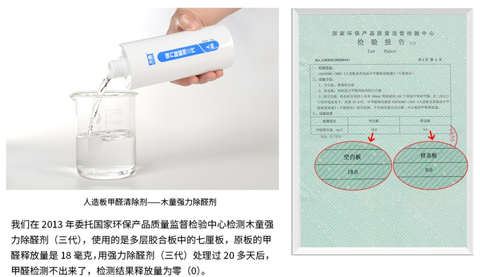 產品使用后3天、5天,或7天、10天之后,或者1個月、2個月之后,甚至半年、1年之后,用甲醛自測盒檢測一下,甲醛降到0.2毫克以下,并且在7天之后,每次檢測都是0.2毫克以下,效果穩定的,就是人造板甲醛清除劑;3天、5天之后反彈的,就是空氣凈化用甲醛清除劑。