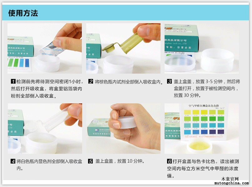 甲醛自測盒的使用方法也很簡單,按照下面的操作說明,一步一步進行就可以了。使用中注意以下幾點,就可以更準確地判斷室內甲醛污染程度。