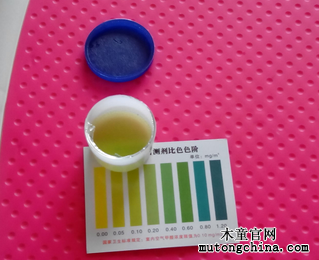 下面這張照片顯示的是在木童工程師實施了甲醛污染治理后的檢測結果。從左至右分別是客廳、兒童房、主臥三個房間檢測結果,試劑顏色非常接近,差異微小,但卻依然清晰可辨:客廳最接近0.1毫克,主臥與0.08接近,兒童房在0.02-0.05毫克之間。細小的差異全都顯現了出來。