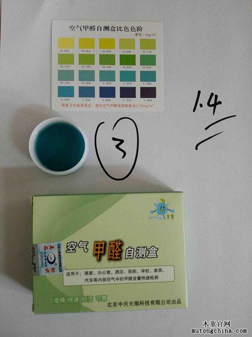 對比幾家的結果,木童和第二家檢測盒的數值一致均是1.4,準確的可能性較大,但第二家的顏色單一,不容易比對結果,第一家和第四家的數值相對較低1.1和0.8且不統一,說明不準確的可能性較大。