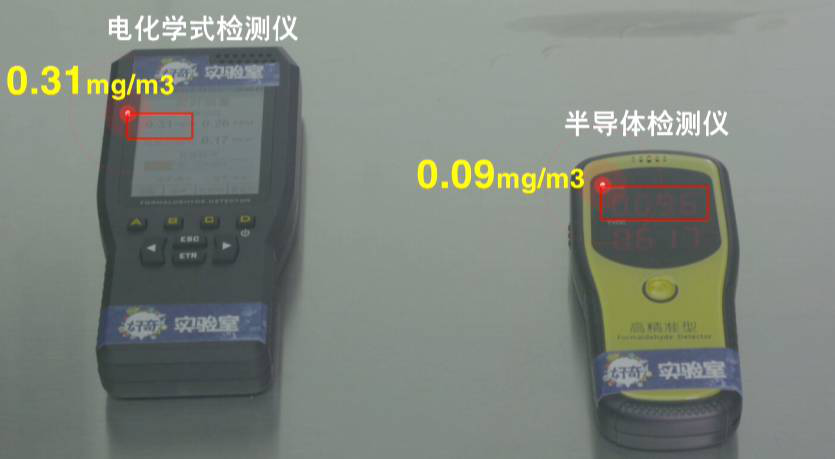 某寶上熱賣的甲醛檢測儀品牌眾多,價格也是幾十到幾百不等;有的銷量很好的一月能賣數(shù)萬臺,點開評價也是好評一片,其中“檢測靈敏”、“數(shù)據(jù)精準”成了主要關(guān)鍵詞。看的人眼花繚亂。那這些檢測儀真的那么好用嗎?答案是:沒有用!誤差極大,基本和玩具差不多。《好奇實驗室》某期節(jié)目曾做過實驗:兩臺便攜式甲醛檢測儀,一臺是半導體傳感器,一臺是電化學傳感器,和國標的檢測方法進行對比,3臺儀器全部放在密封艙里,然后用福爾馬林溶液往里面加點料。結(jié)果是這樣的: