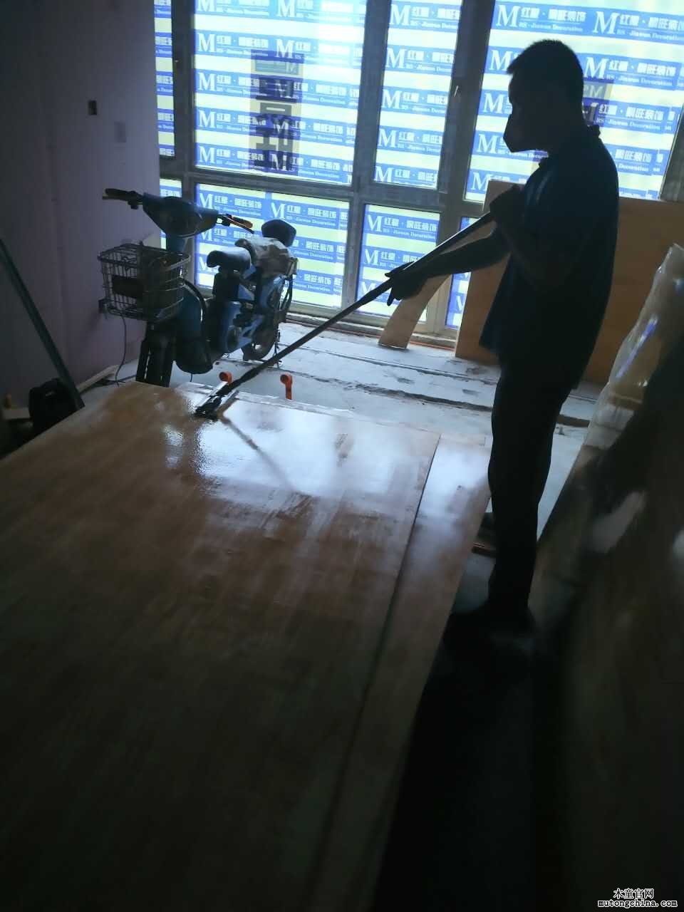 圖為木童工程師在裝修過程中進行