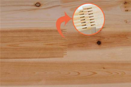 指接板是由多塊木板拼接而成,豎向木板間采用鋸齒狀接口,類似兩手手指交叉對接,在拼接過程中會用到膠黏劑進行粘合固定,用膠量相對很少。