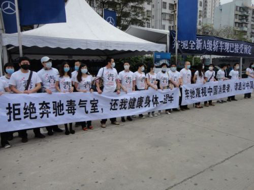 全國各地深受“異味”困擾的車主們四處奔波、艱難維權,但依舊沒有得到一個滿意的答復,“異味”問題一直存在。而奔馳廠家和4S店的態度十分一致:表示所用車內材料完全符合中國的相關標準,堅決不承認車內“異味”是有害物質會危害車主身體健康。